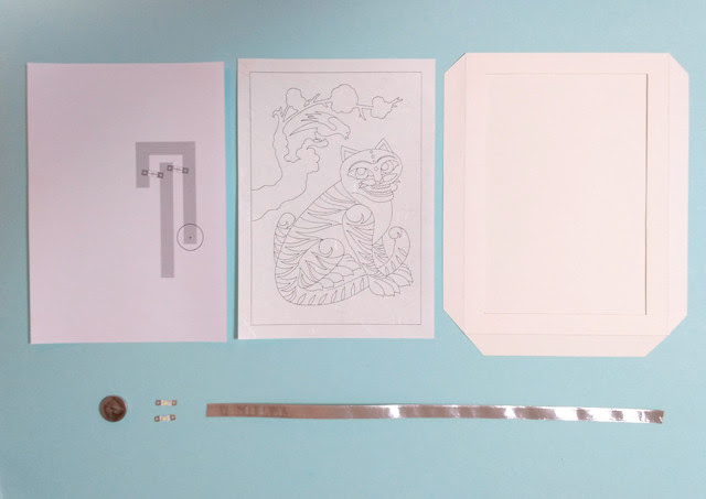 준비물 : 회로도, 민화 도안, 종이액자, 3V전지, LED2개, 알루미늄 테이프