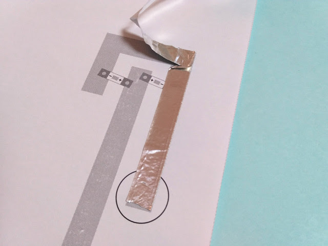 알루미늄테이프는 도체의 역할을 하기에 사진처럼 끊지 않고 접어 붙여야 해요.