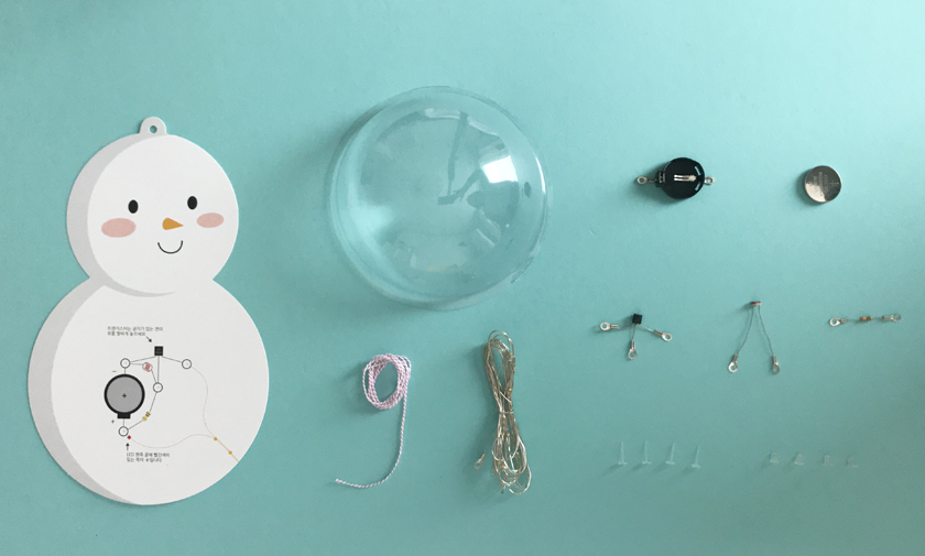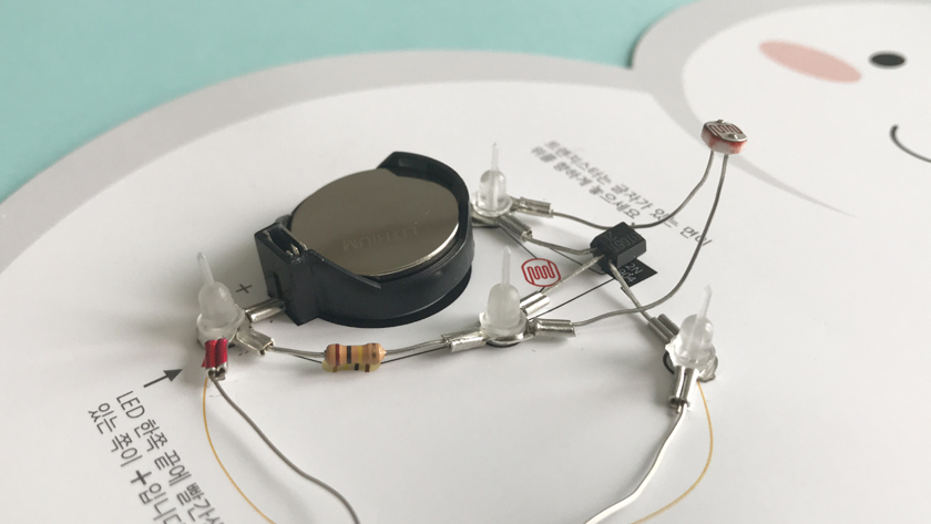 그걸로 전자회로를 만들어서 조명을 끄면 저절로 LED가 켜지는 구조예요.벽에 걸어도 좋고 트리의 장식용 오너먼트로 사용해도 좋을 아이템이예요.