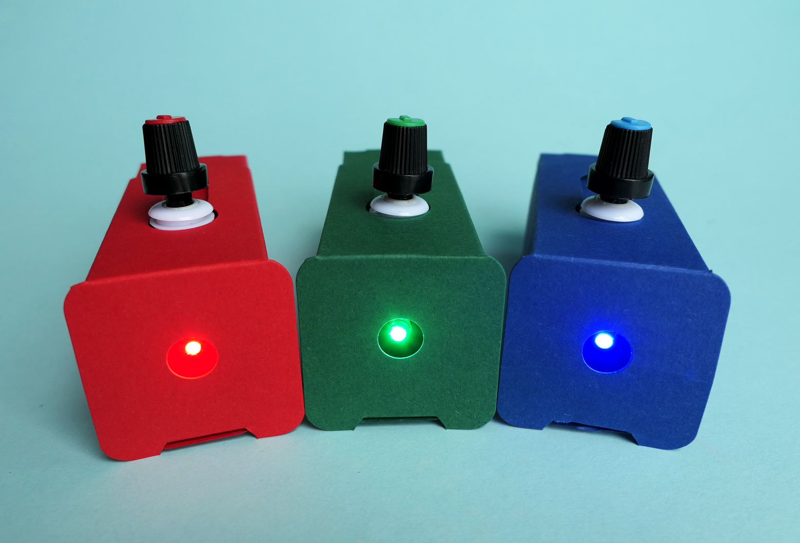 메이크메리의 전자미술공작소 | 빛의 삼원색을 직접 만들어 봐요. Red, Green, Blue 세 가지 LED를 이용해 손전등을 만들고 빛의 가산혼합을 비롯한 다양한 체험을 할 수 있어요. 키트 구입은 네이버 �