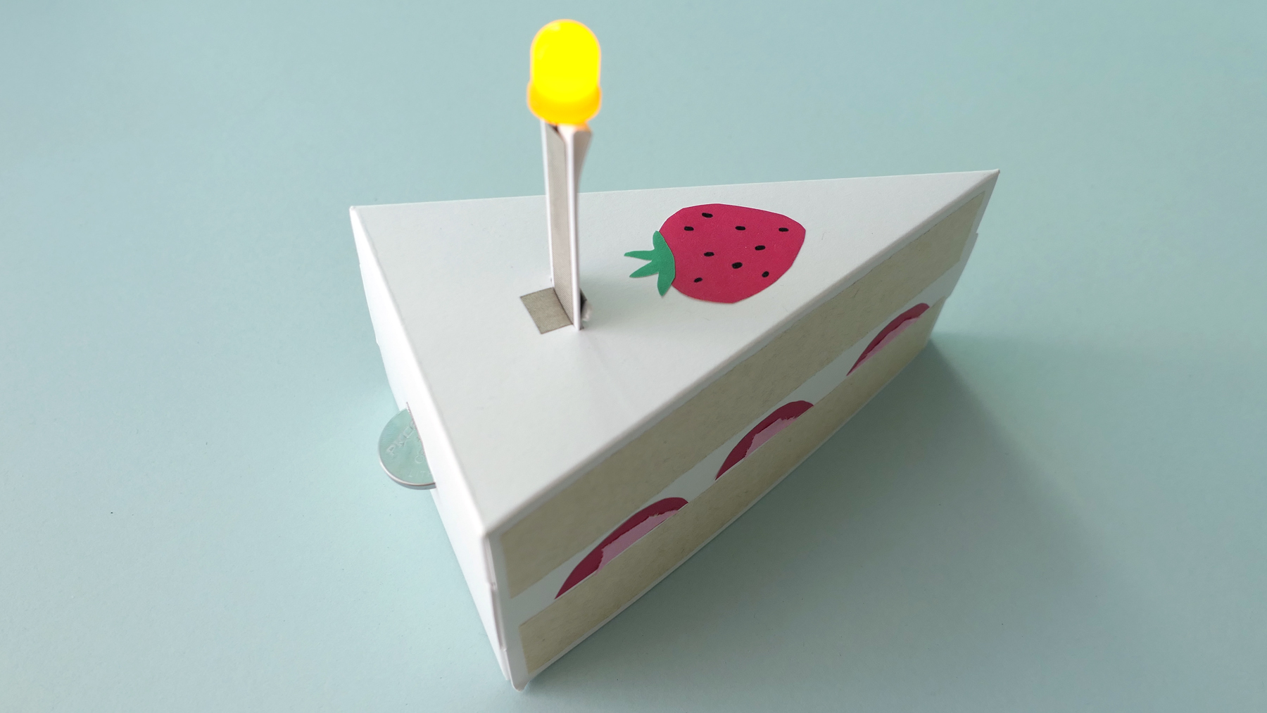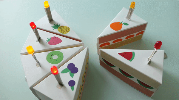 초를 케이크에 꽂으면 LED가 켜지는 특별한 케이크를 만들어 봐요