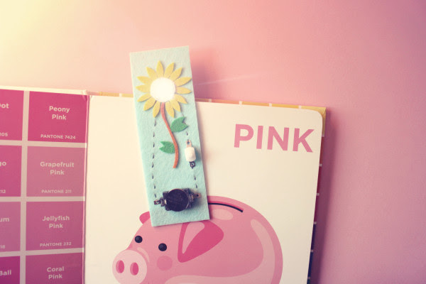따뜻한 느낌의 펠트지위에 전도성 실로 한땀 한땀 바느질해서 LED가 반짝이는 책갈피를 만듭니다.