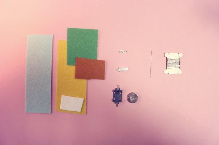 준비물 : 펠트지, LED, 스위치, 전지홀더와 전지, 바늘, 전도성 실
