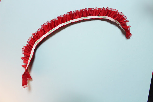 리본끝부분에 양면테이프로 쭉 감아주세요.